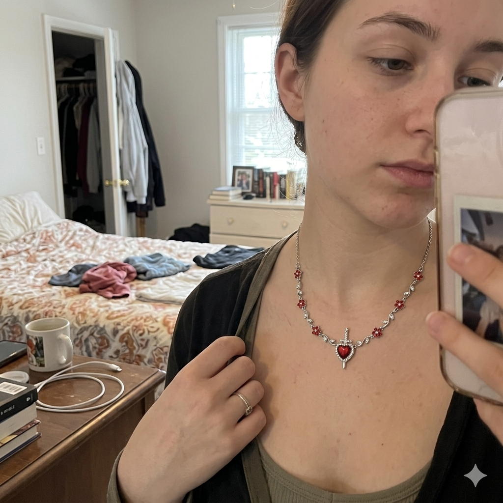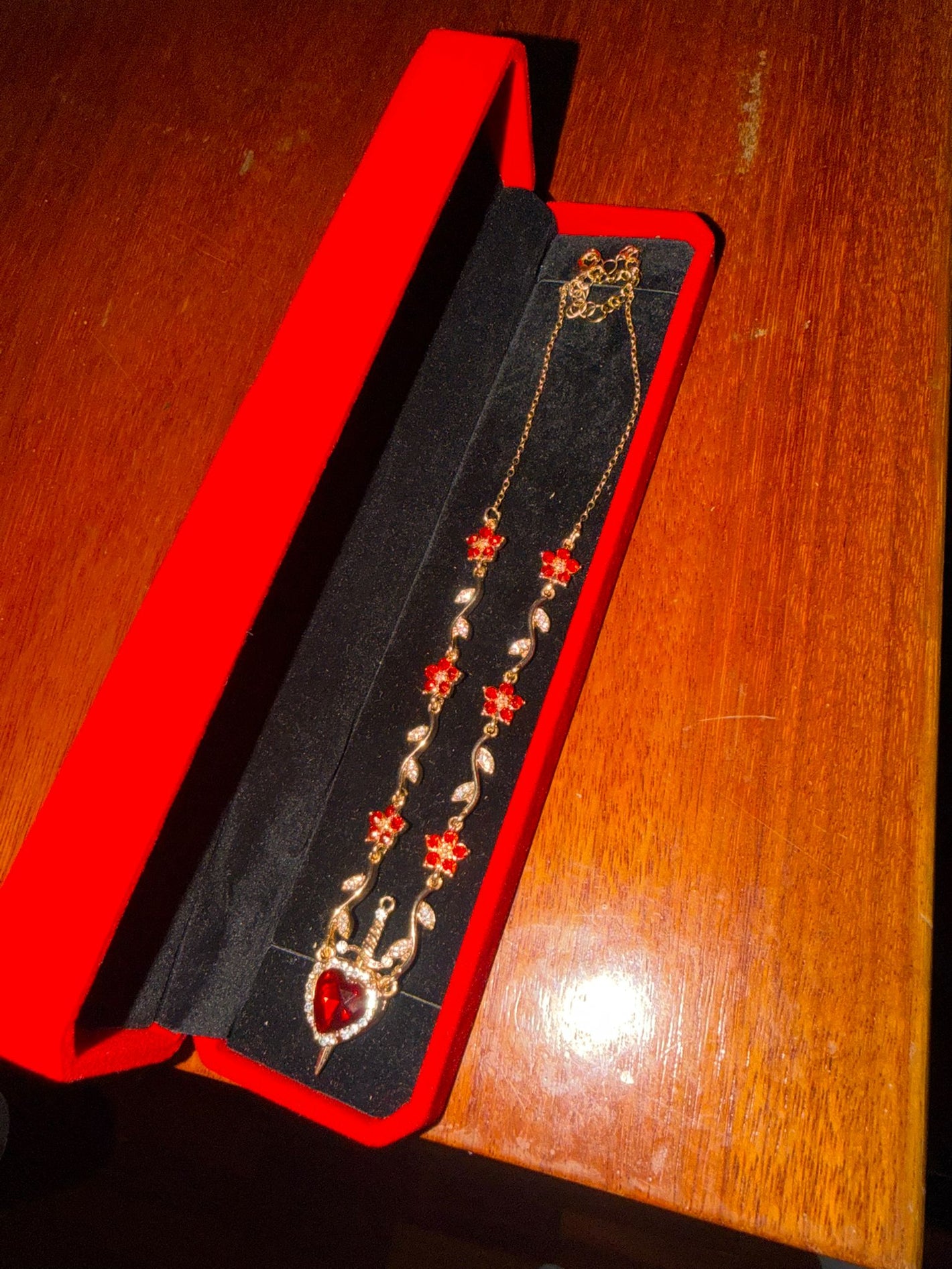 Ist heute angekommen und ich war wirklich überrascht 😍 es ist noch schöner in echt. Ich liebte die Qualität und das Detail des Herzens und des Schwertes.